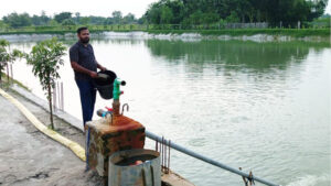 আরমান বিভিন্ন এনজিও থেকে ঋণদেনা করে প্রায় ৮ বিঘা জলাশয়ের মাছ চাষের উপযোগী আধুনিক মানের একটি পুকুর তৈরি করেছে। বৃষ্টির পানিতে পুকুরপাড় ভেঙ্গে না যায় এবং অতিরিক্ত পানির সাথে মাছ বেড় হয়ে ক্ষতি না হয় এজন্য জিওশিট বস্তা দিয়ে মজবুত করে পাড় বাঁধে। নিরাপত্তার স্বার্থে সে পুকুরের চারপাশ সিমেন্টের পিলার ও জিআই তার দিয়ে বেড়া দিয়েছে। পুকুরের নিরাপত্তা বেষ্টনীর বেড়ায় ঝুলছে পটল, করলা, ঝিঙ্গা এবং পাড়ের চারপাশে সাড়ে ৩’শ সুপারির গাছ রোপণ সহ বিভিন্ন সবজি চাষ করছে আরমান। পুকুরের স্বচ্ছ পানিতে ডিঙ্গি নৌকা করে মাছের খাবার দেও সে । বিকালে অনেকেই এই নৌকায় চড়ে সময় কাটায়। এমন দৃষ্টি নন্দন আধুনিক পুকুর পাড়ে বিকালে অনেকেই সময় কাটায়।