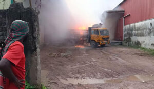 দিনাজপুরের হিলি স্থলবন্দরে পানামা পোর্টের ভিতরে বাংলা ট্রাকে ব্লিচিং পাউডার লোড করার সময় আগুন ধরে। প্রায় ১ ঘন্টা চেষ্টার পর আগুন নিয়ন্ত্রেনে আনে ফায়ার সার্ভিসের একটি ইউনিট। রোববার (২৪ আগস্ট) বিকালে হিলি পানামাপোর্টের ভিতর বাংলা ট্রাকে ব্লিচিং পাউডার গুডাউন থেকে লোড করতে গিয়ে এই দুর্ঘটনা ঘটে।